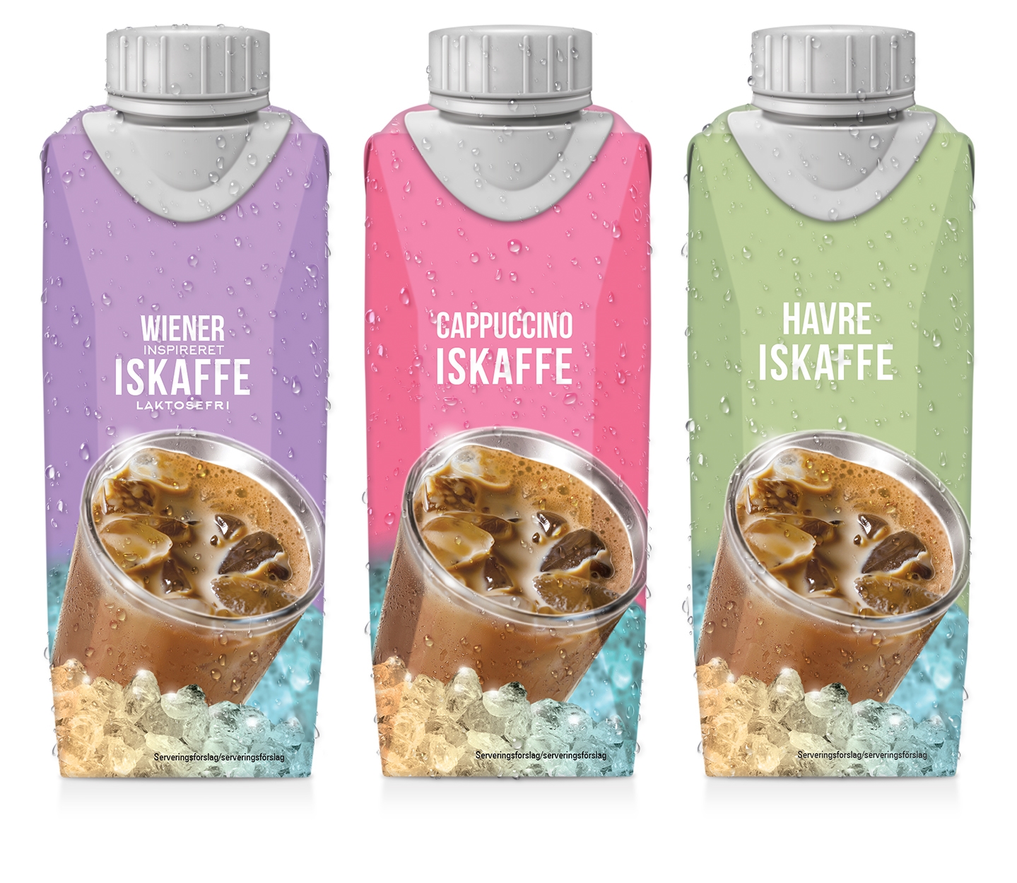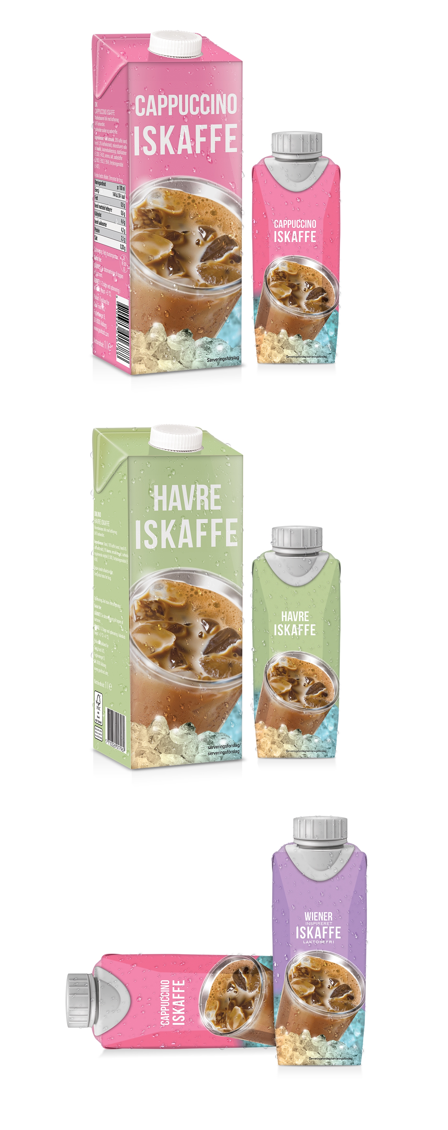 GEIA foods, a Danish food company wanted to introduce a new range of cold coffee in different flavours, in 1 liter and 250ml tetra packs. The design had to be minimalistic and classy with bright colours for better visibility in the cluttered supermarket environment.