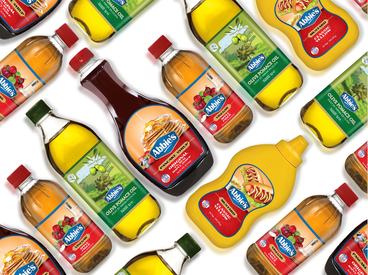 Abbie's Food International Inc., based in Wilmington, Delaware USA, has been involved in the export and marketing of the finest and most authentic food Products. Their wide assortment includes products such as Peanut Butter, Sauces, Vinegars, Mustard, Tuna, Olives, Pickles, Coconut Milk, Syrups, Bread Crumbs etc. With more than 100 Products in over 16 categories, the company wanted a ground-up development of the brand, from the logo to the packaging concept. Given the wide range of packaging shapes and sizes, they were expecting an attractive concept with the ease of scalability to different sizes without losing prominence of the design elements.