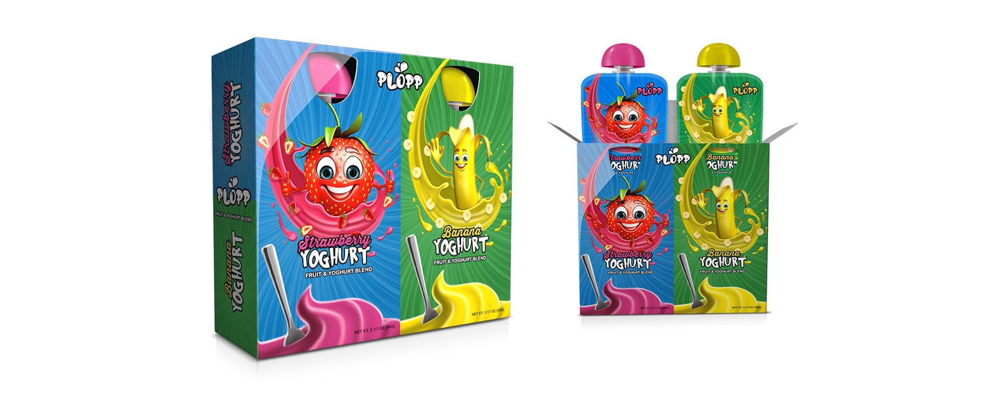 Plopp! as the name suggests is a fun yoghurt brand for the kids. What’s better than a nutritious and fun food for the kids? The packaging designs had to be bright and engaging in the supermarkets in order to attract maximum attention and to empower parents to change their kids snacking habits. Initially offerings- 2 flavours (Strawberry and Banana)