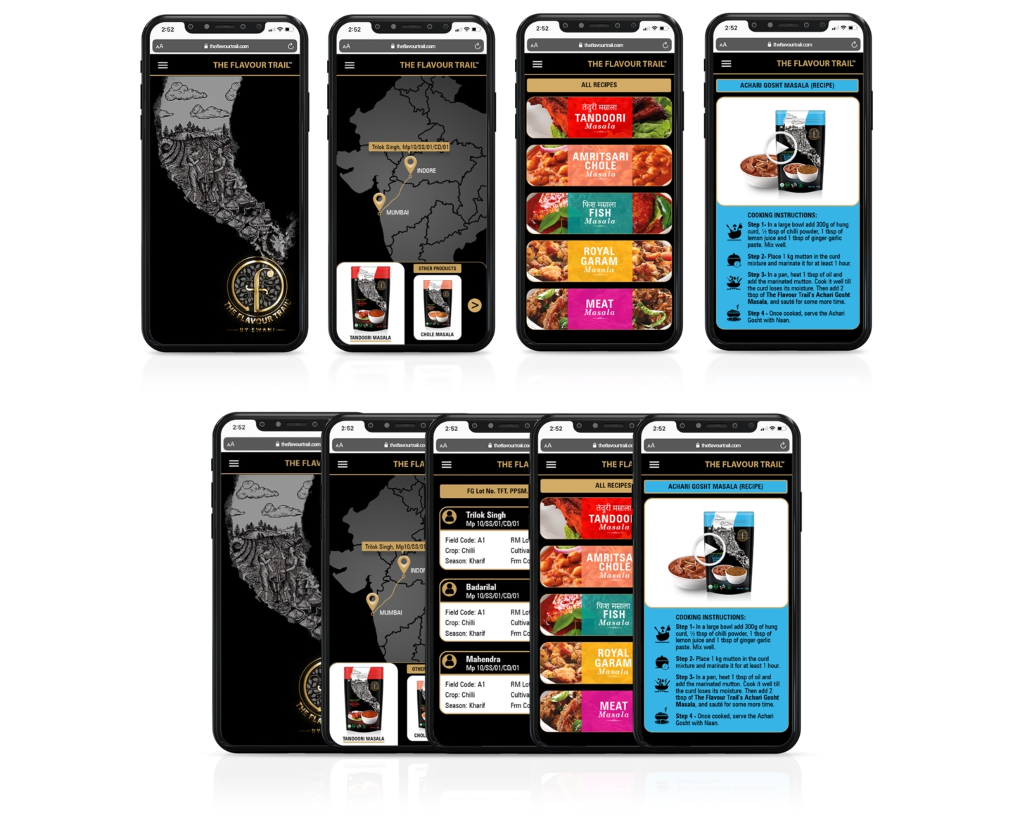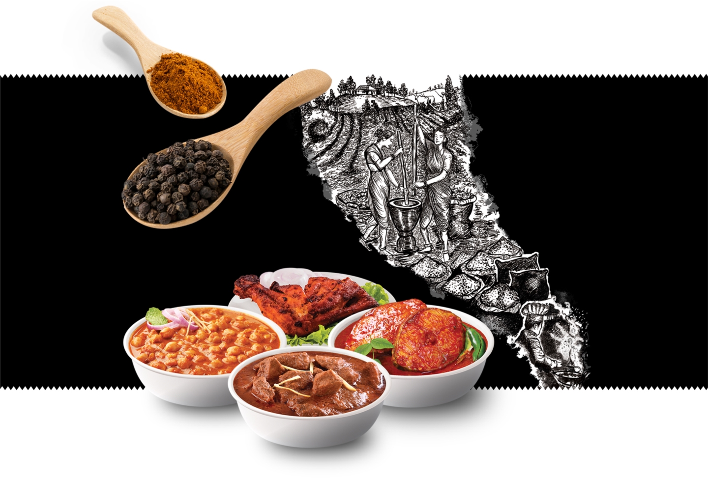 Given the rich legacy of the parent brand, the logo was designed in a semi vintage style. The flavour trail was depicted with an intricate illustration. The illustration tells a story of the fresh produce from the farm to folk and everything in between. The concept and the layout of the design was the biggest differentiating factor to make the pack stand out from it's competitors. The pictures of the spice mix in a clean white bowl indicates purity. The crisp images of the dish made it mouthwatering. The black background makes the design, product name and the pictures stand out making it hard to miss on the shelf.
